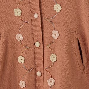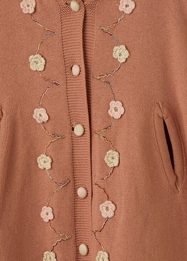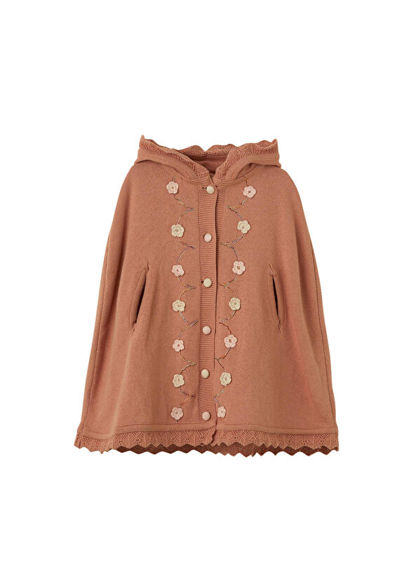 Gül Kurusu Çiçek Detaylı Kız Çocuk Panço Organik