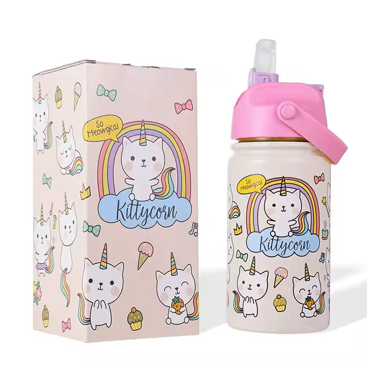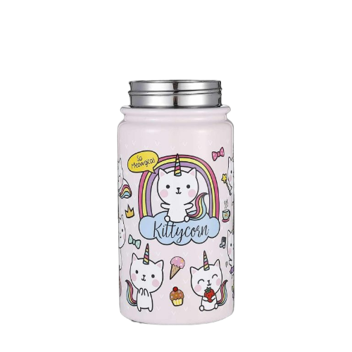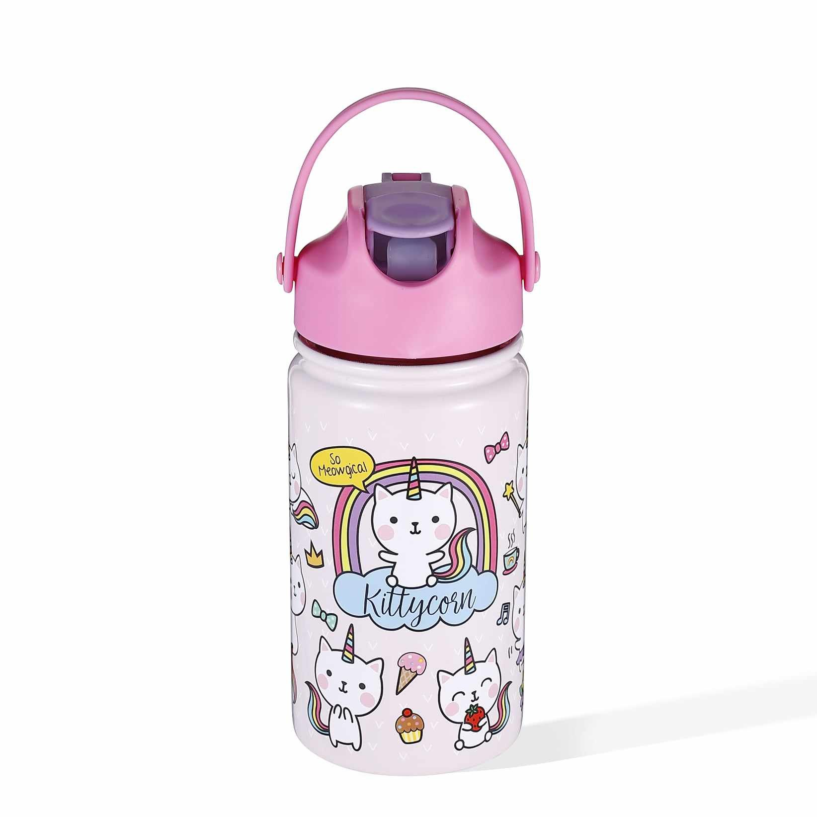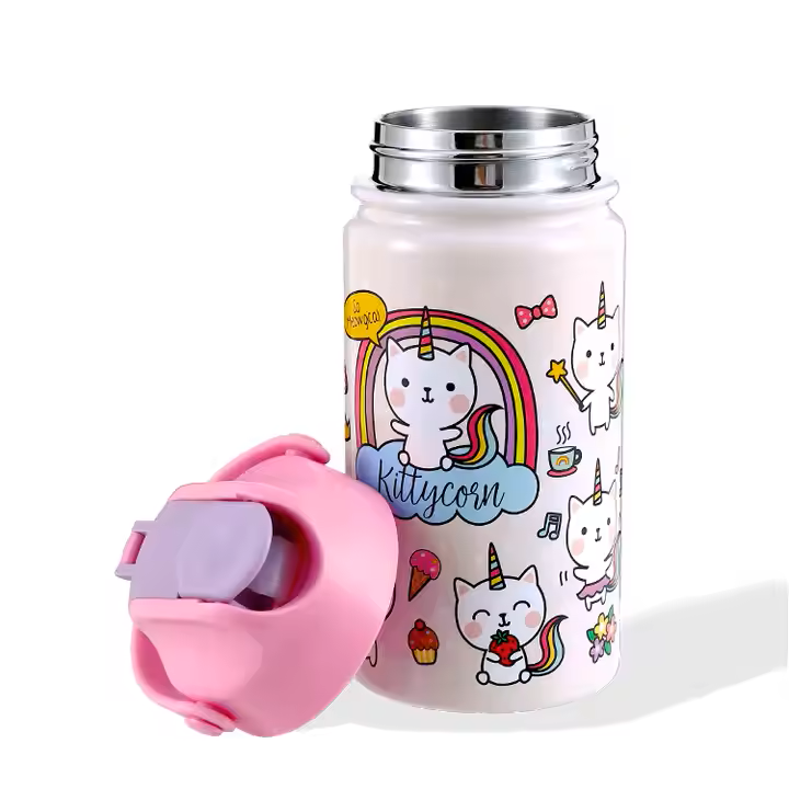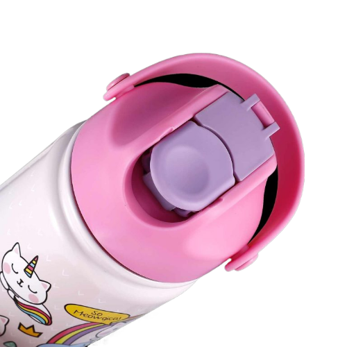 Çocuk 450 Ml Kitty Matara Paslanmaz Çelik Pipetli Termos Pembe Bpa İçermez (Yedek Pipet ve Temizleme Fırçası Mevcut)