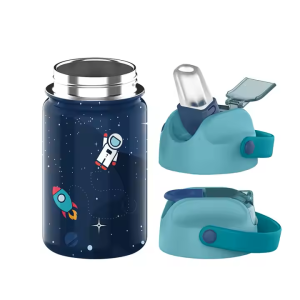 Çocuk 450 Ml Uzay Matara Paslanmaz Çelik Pipetli Termos Lacivert Bpa İçermez (Yedek Pipet ve Temizleme Fırçası Mevcut)