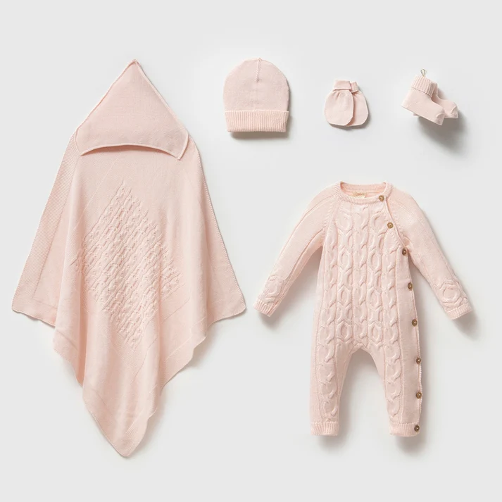 Pembe Kundaklı Tulumlu Bebek 5’li Hastane Çıkış Seti Organik Premium