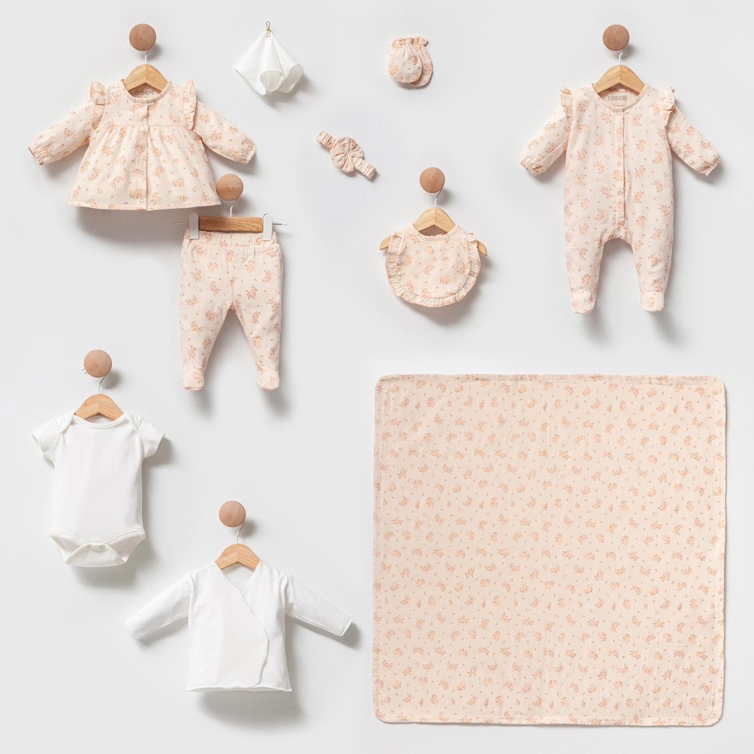 Somon Çiçek Baskılı 10’lu Kız Bebek Hastane Çıkış Seti