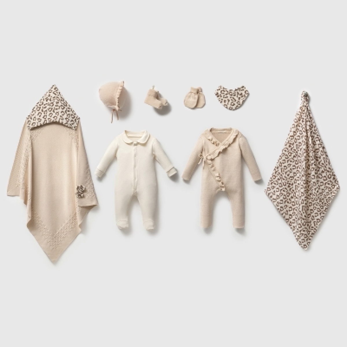 Triko Kahve Leopar Kız Bebek 8’li Hastane Çıkış Seti Organik