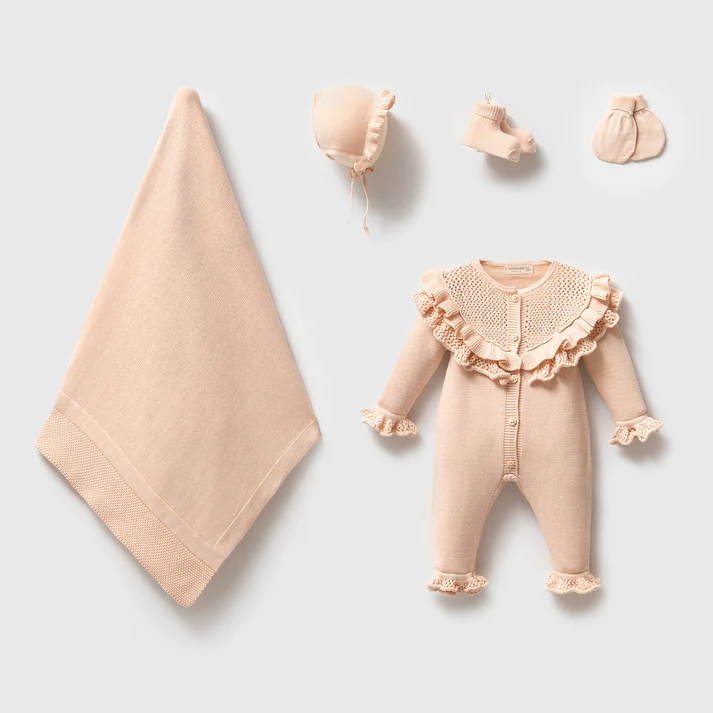 Triko Lisa Bej Kız Bebek 5’li Hastane Çıkış Seti Organik