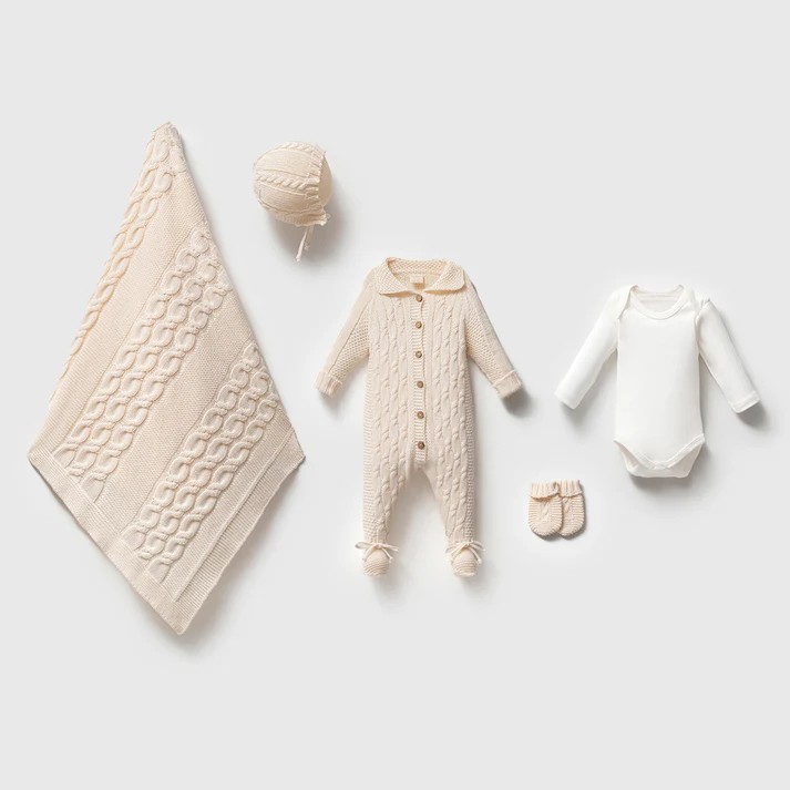 Triko Alex Krem Bebek 5’li Hastane Çıkış Seti Organik