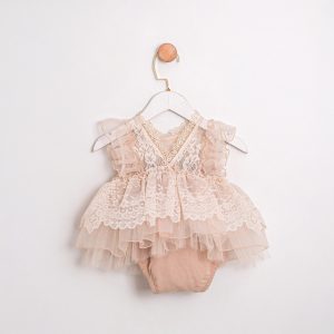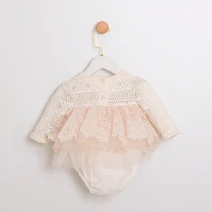 Krem Eva Bony Dantelli Saç Aksesuarlı Kız Bebek Elbise Tulum
